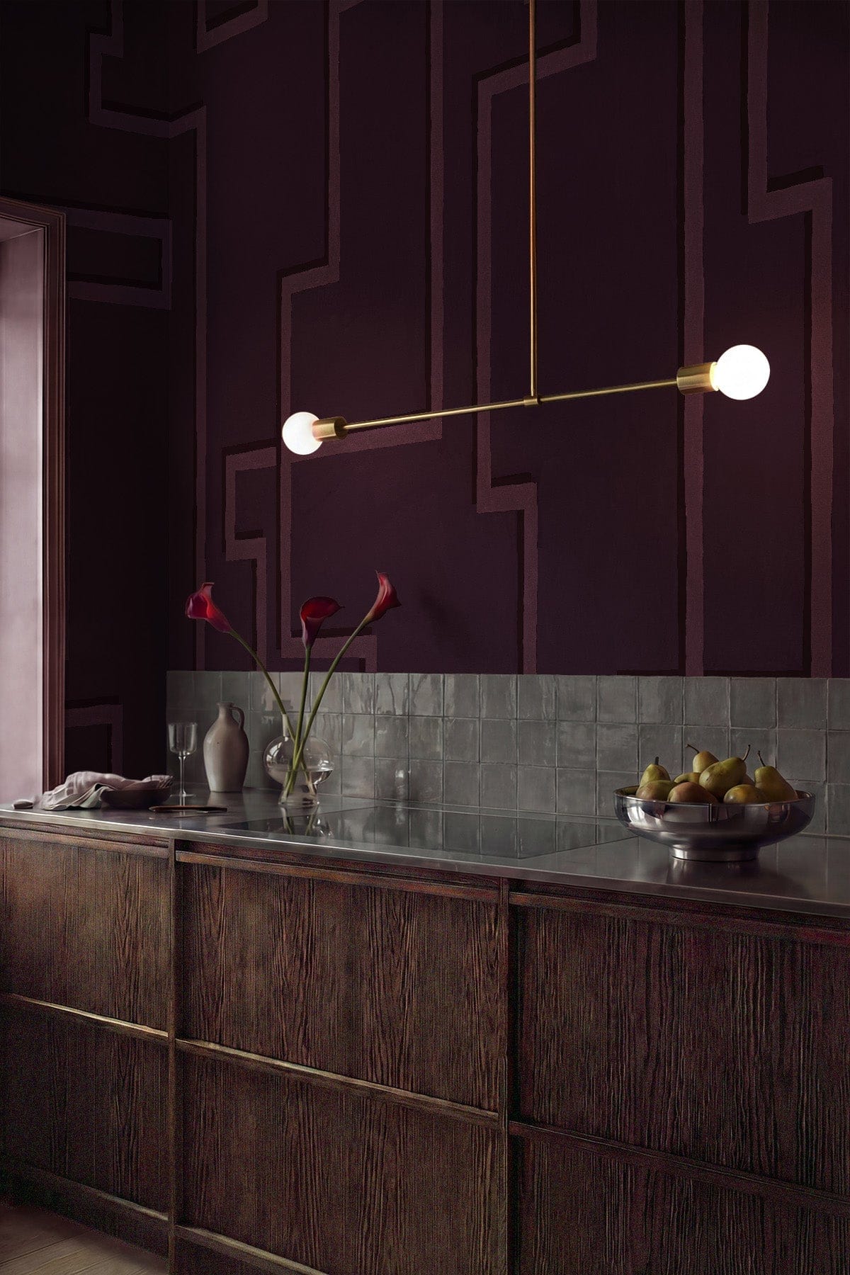 The Shadow Lines wall mural in purple is a bold and refined design, defined by irregular graphic lines that rise with a dynamic sense of movement. Structured yet intentionally uneven, the composition is enhanced by subtle shadow effects that add depth and dimension. Hand-painted with precision, the sharp linear elements draw inspiration from Art Deco, blending timeless elegance with a contemporary edge. Rich purple tones bring a sense of depth and sophistication, shifting beautifully with the light and adding a dramatic yet balanced character. Shadow Lines in Purple is a confident statement piece, perfect for interiors seeking a modern expression with artistic refinement.