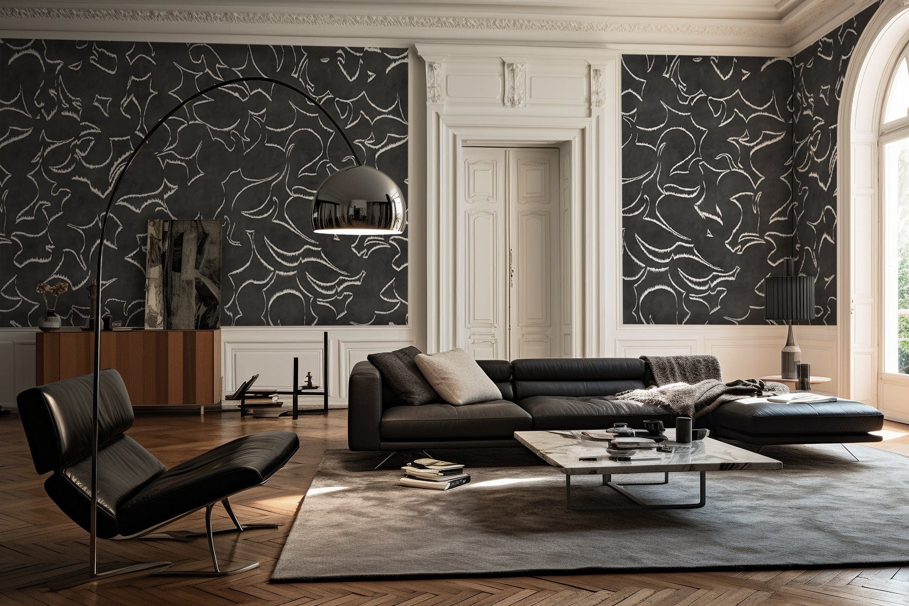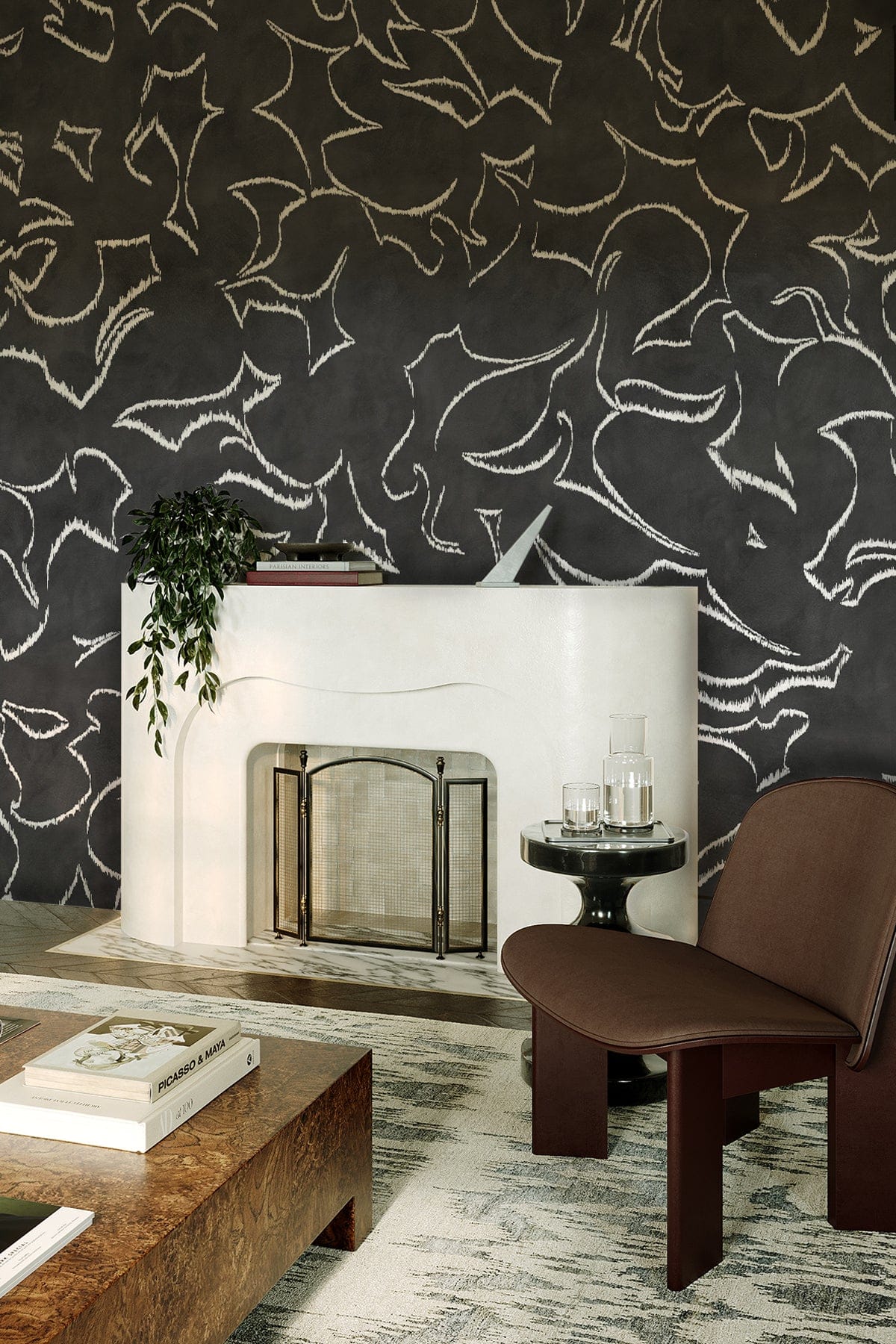 Hand-sketched floral contours take center stage in this bold, graphic composition. The abstract shapes are drawn with a free, expressive hand, allowing the lines to flow naturally across the surface. Set against a deep black background, the white contours create striking contrast and strong presence. This wall mural feels like a fashion sketch brought to life, confident, artistic and unapologetically modern. It’s made for spaces that lead rather than follow, where design is a form of self-expression